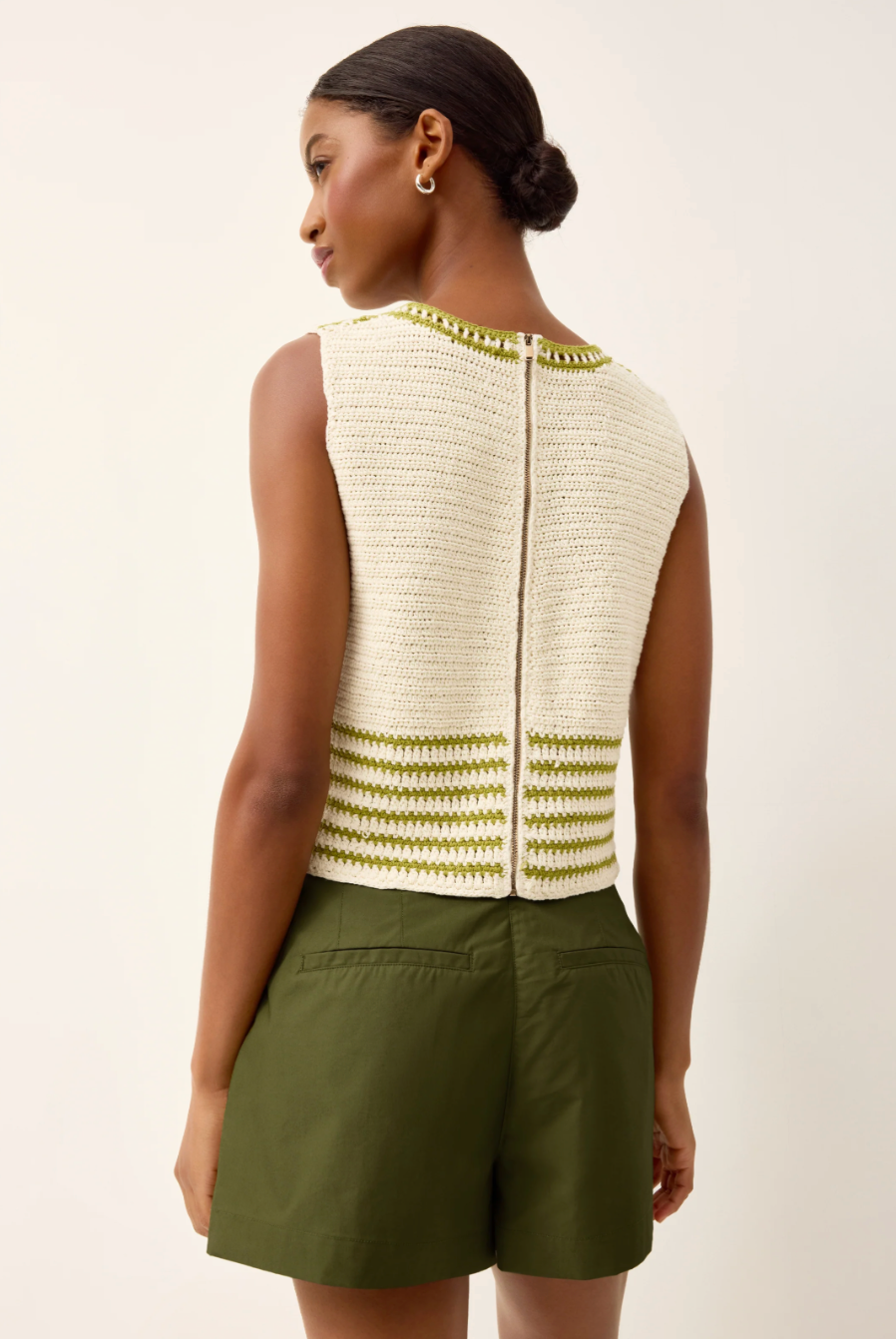 A spring-weight knit with a welcome pop of color, Cass is designed to pair effortlessly with statement skirts and shorts. Its graphic crochet adds texture where a basic rib knit won’t do, giving outfits an elevated, thoughtfully layered feel. Perfect for weekend adventures, casual lunches, or travel-ready looks, it balances ease with style.