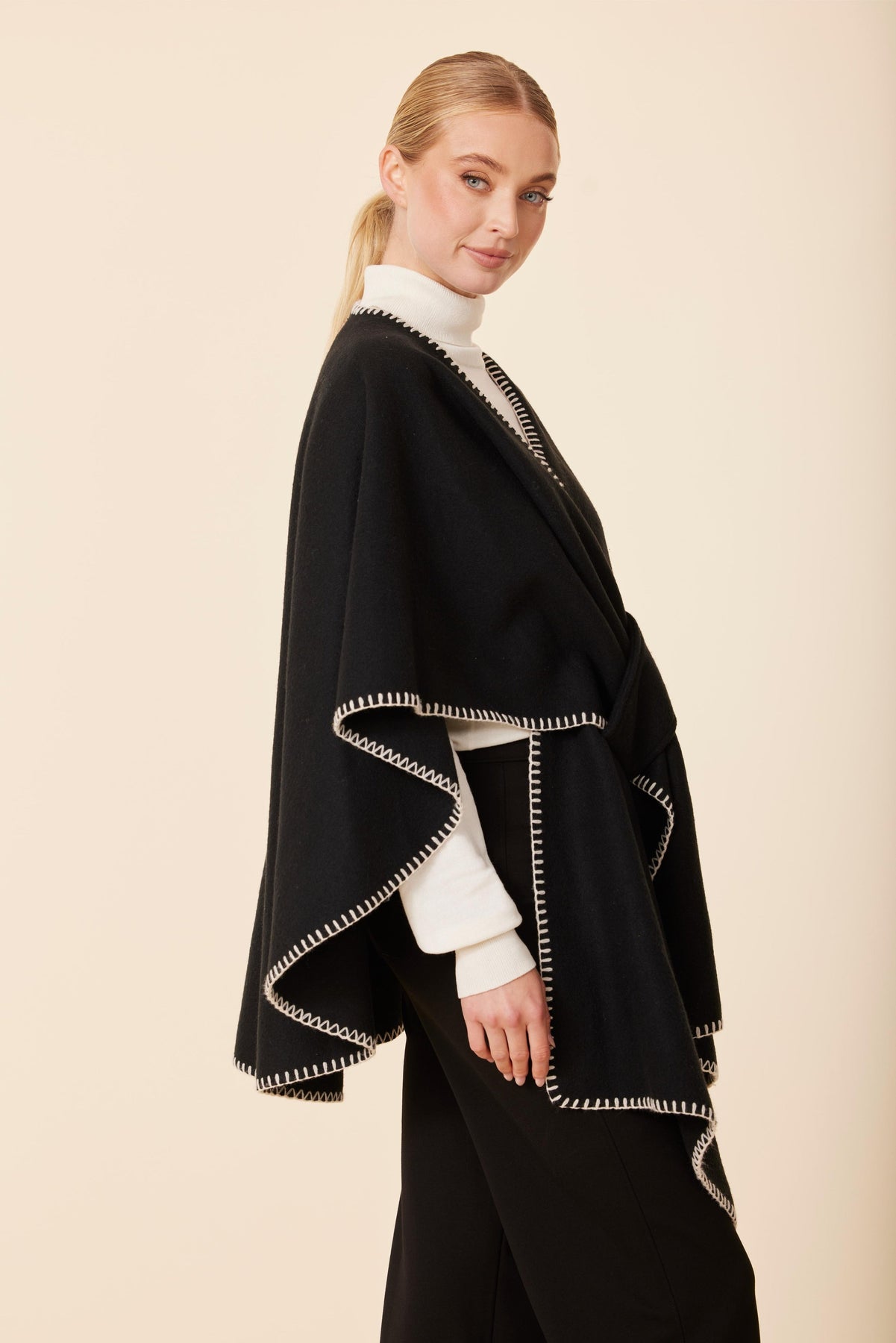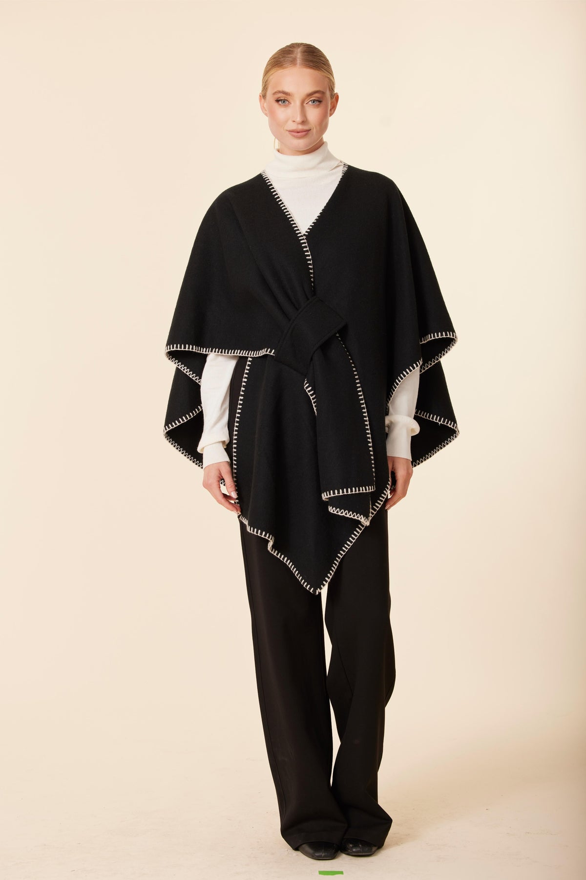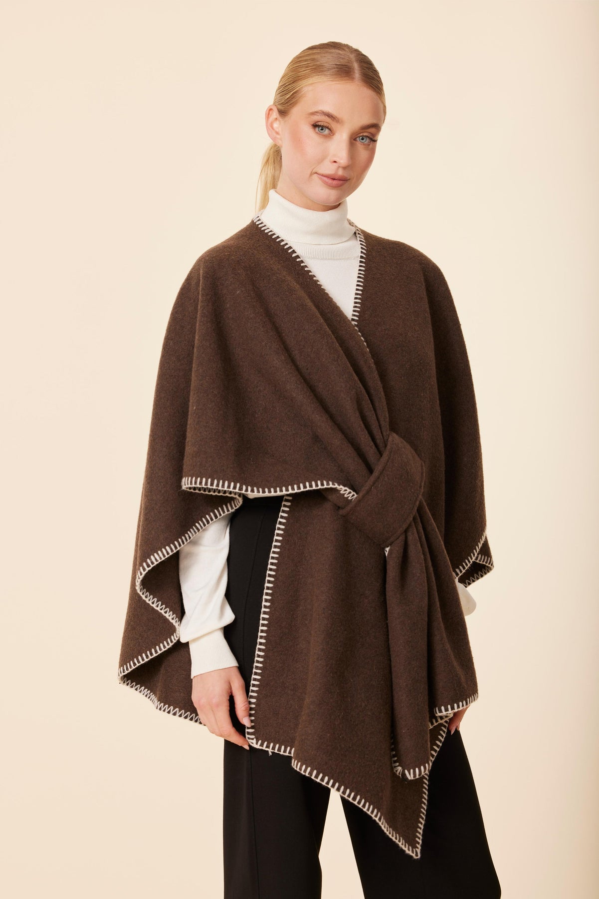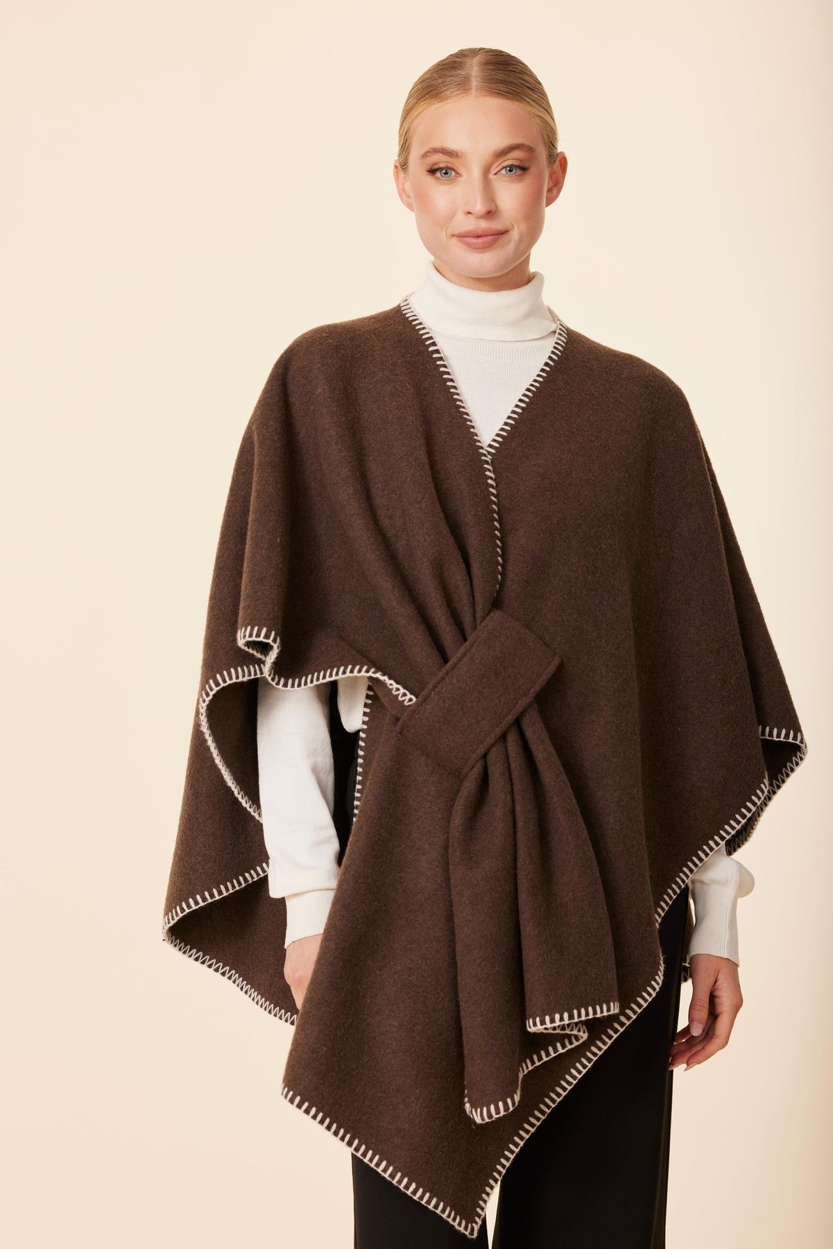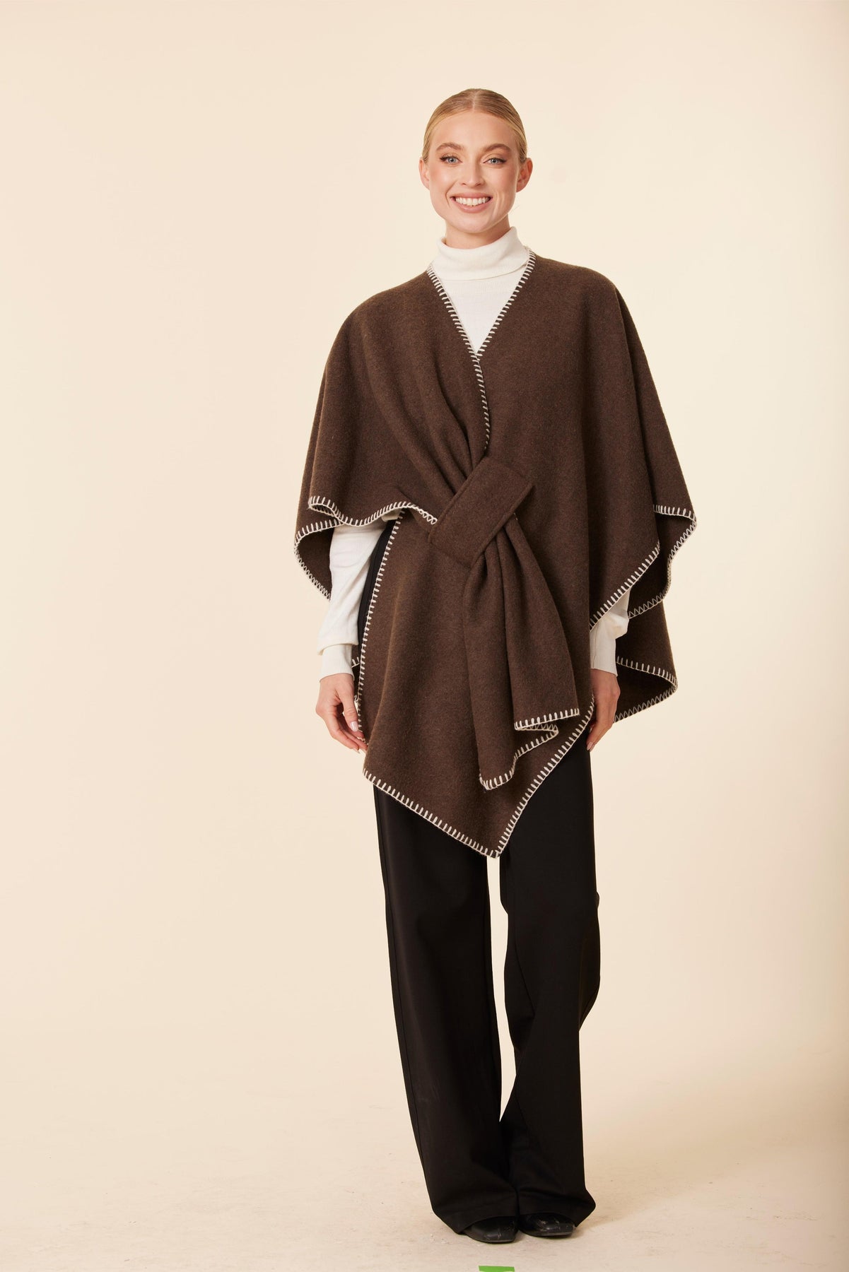 Wrap yourself in effortless sophistication with Dolce Cabo;s fall poncho wrap. Designed with contrast stitching and a belted front, this versatile piece layers beautifully over sweaters and blouses for cozy-chic styling. Perfect for fall apparel, this poncho adds warmth and timeless elegance to your wardrobe, making it a must-have for crisp autumn days.