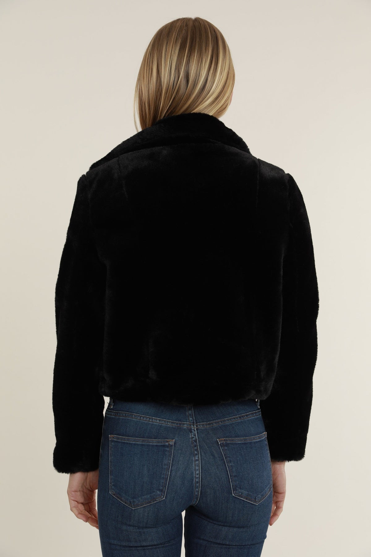 Dolce Cabo;s Paneled Faux Fur Vegan Leather Cropped Jacket is a cozy and stylish piece of outerwear that works with any outfit. Featuring plush faux fur panels contrasted with sleek vegan leather, this cropped jacket offers a modern twist on a classic fall staple. Pair it with high-waisted jeans or a skirt for an effortlessly chic look.