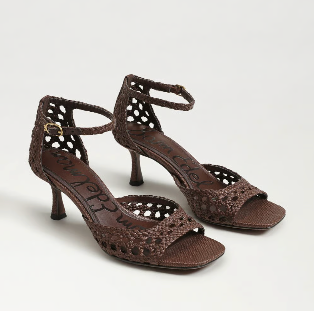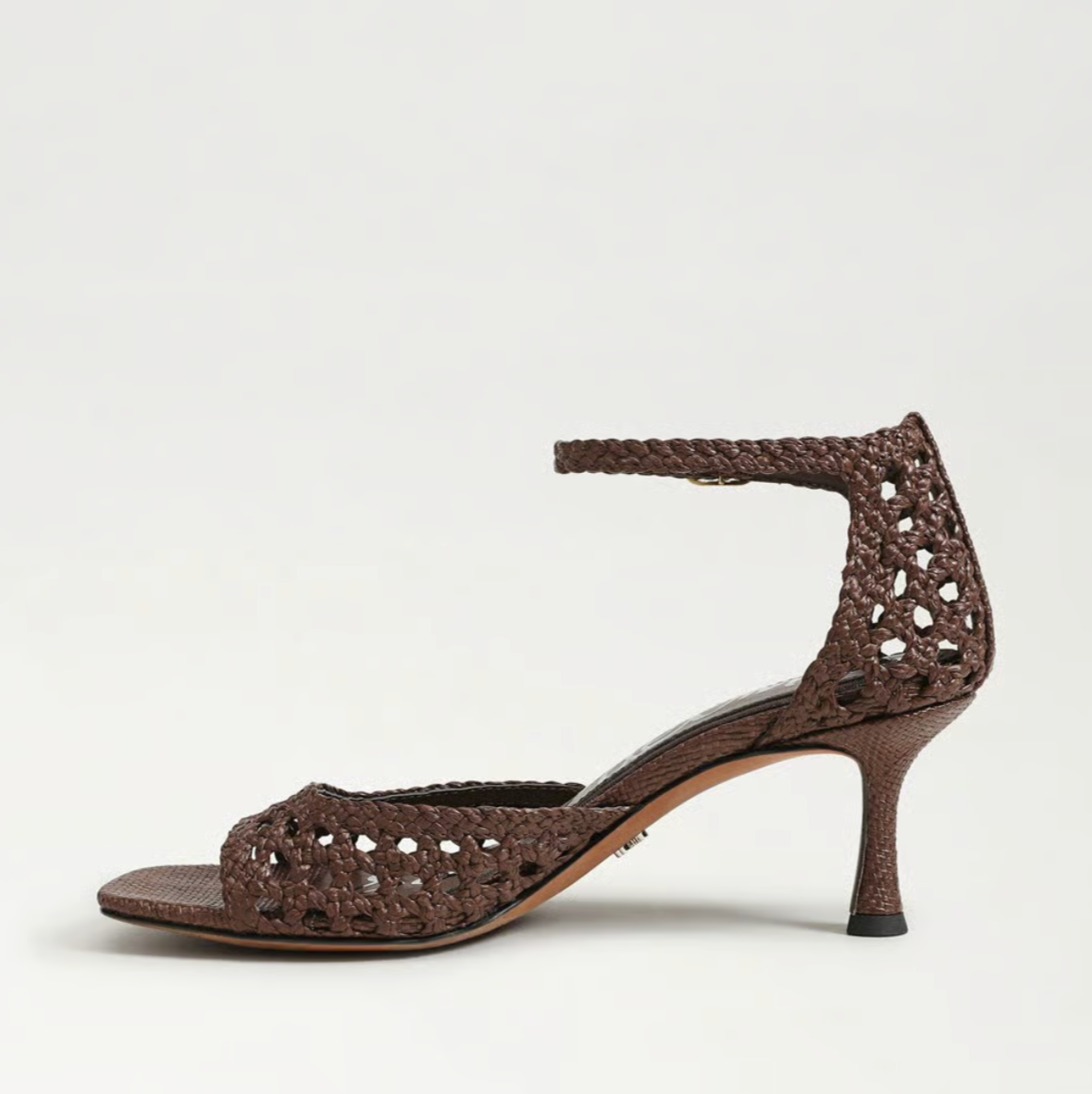 Peyton Kitten Heel Sandal in Terazzo Brown Faux Raffia