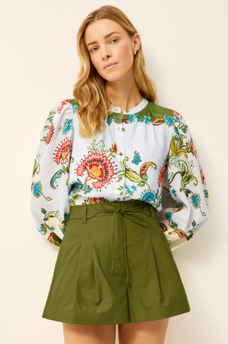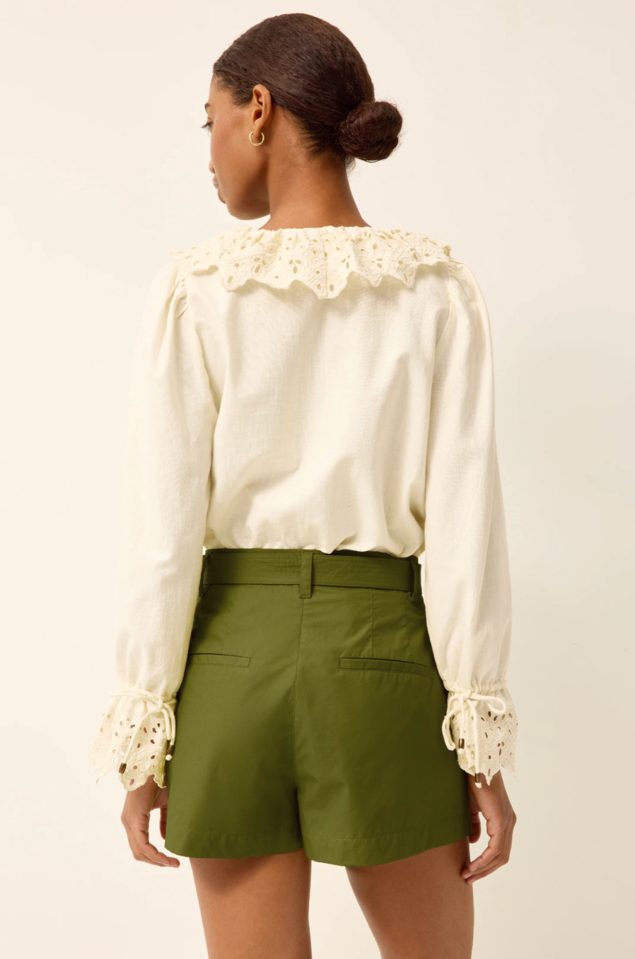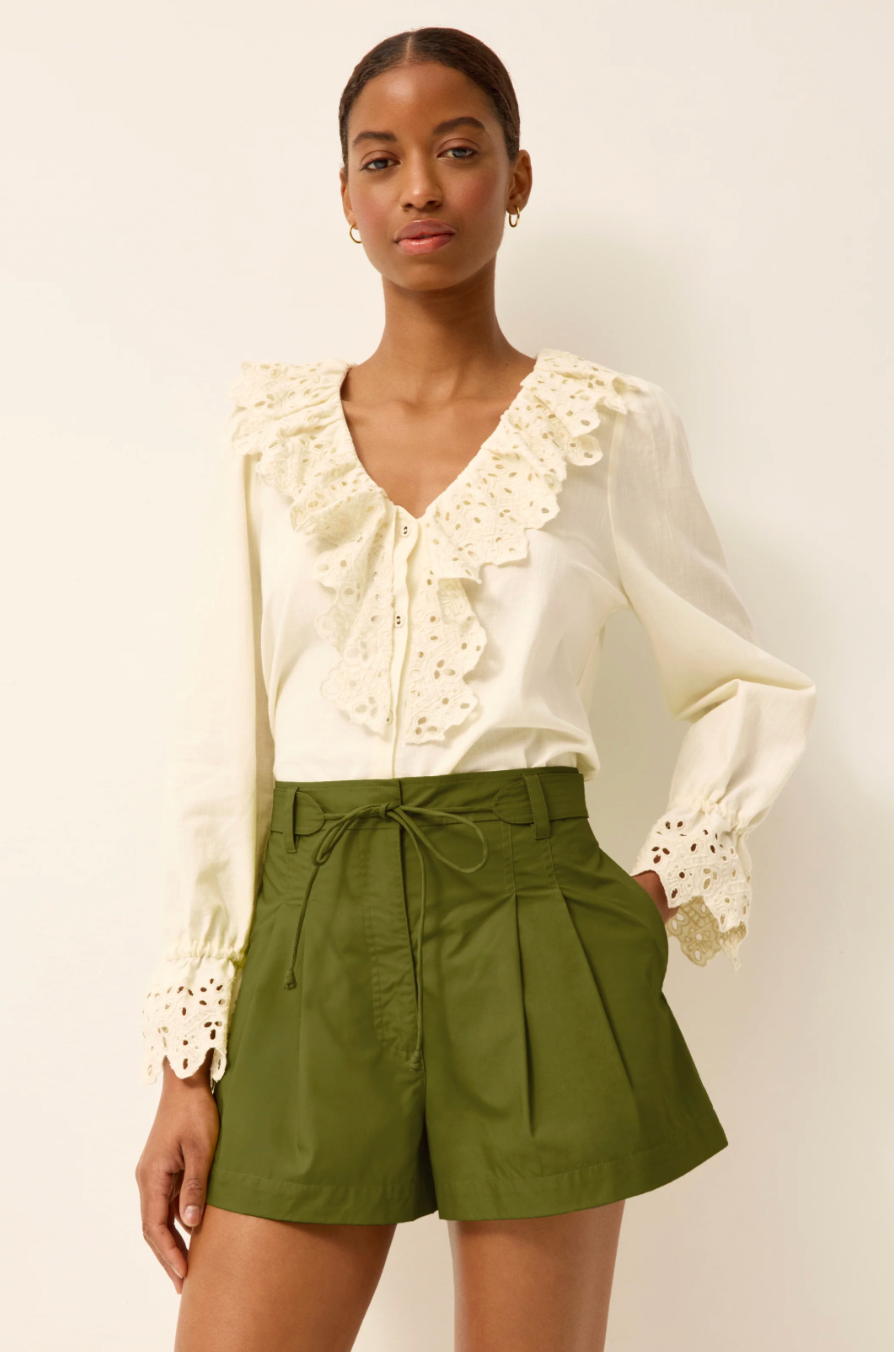 A chic khaki short reboot: Lander’s tailored pleats result in a fit that’s as flattering and feminine as it is utilitarian. Made from a sleek cotton chino, the A-line short is designed to sit high on your waist and features a removable belt with long, corded ties. This season, we’re styling the fully-lined silhouette in earthy Ivy green with new knits and romantic wovens.