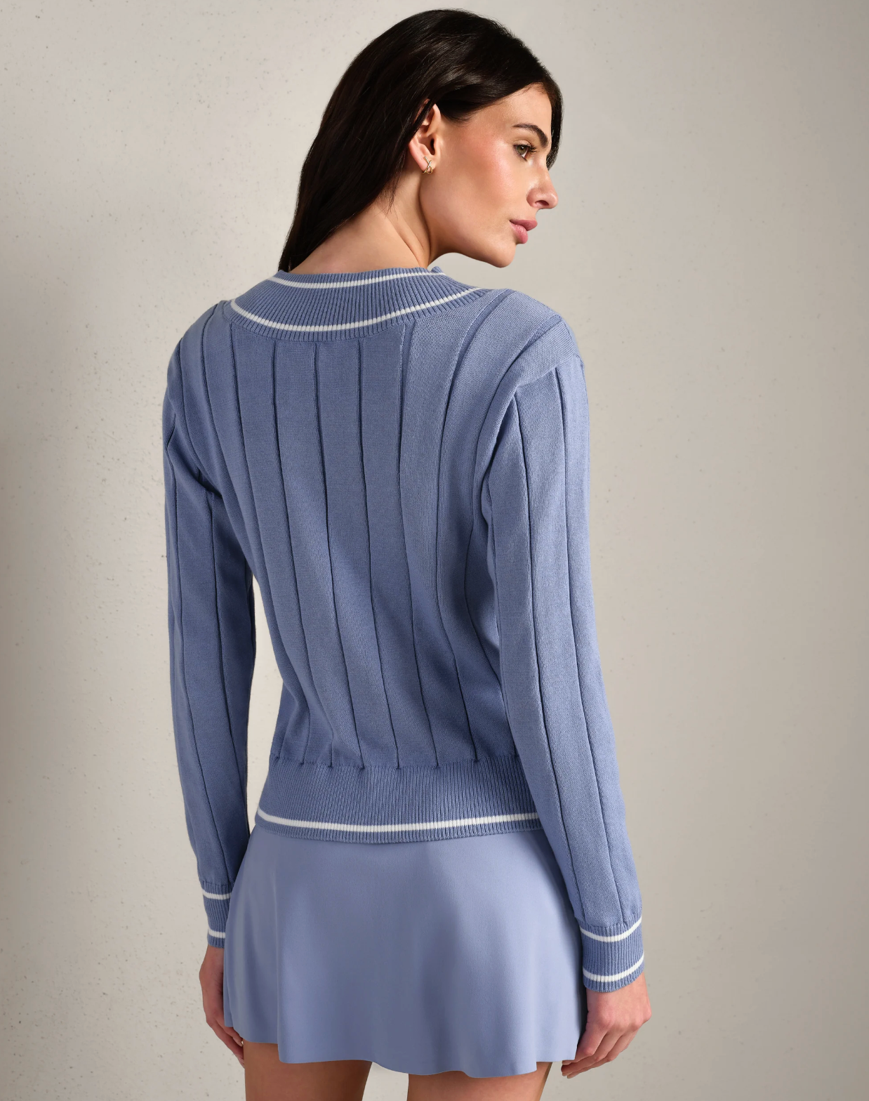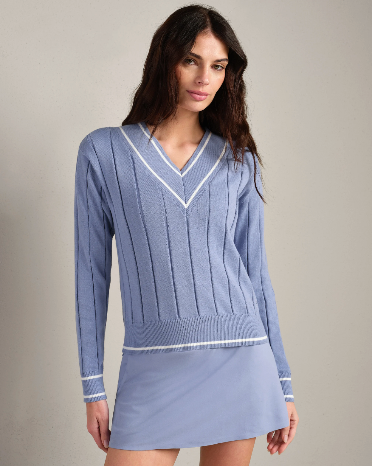 A sweater with staying power. Classic cable texture, a whisper of varsity, and yarns that feel good the second you pull it on. It’s not stuffy, it’s not borrowed; it’s yours. Throw it on with jeans, slip it over a dress, keep it in rotation season after season. Consider this your forever outfit boost, with just enough sport in its DNA to keep things interesting.