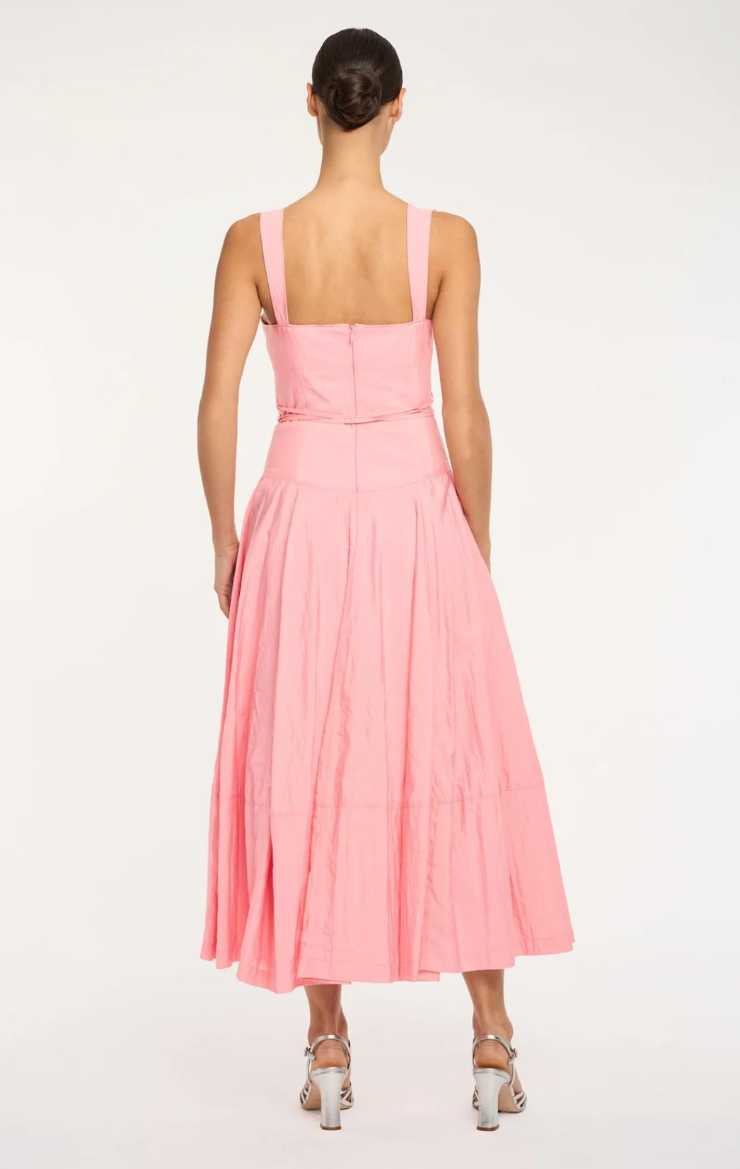 The Jerome Dress brings polished elegance to your wardrobe. Featuring a sweetheart bodice and tie waist, this sleeveless sundress flatters effortlessly while the flowing midi skirt moves with grace. It's the perfect choice for refined daytime events.