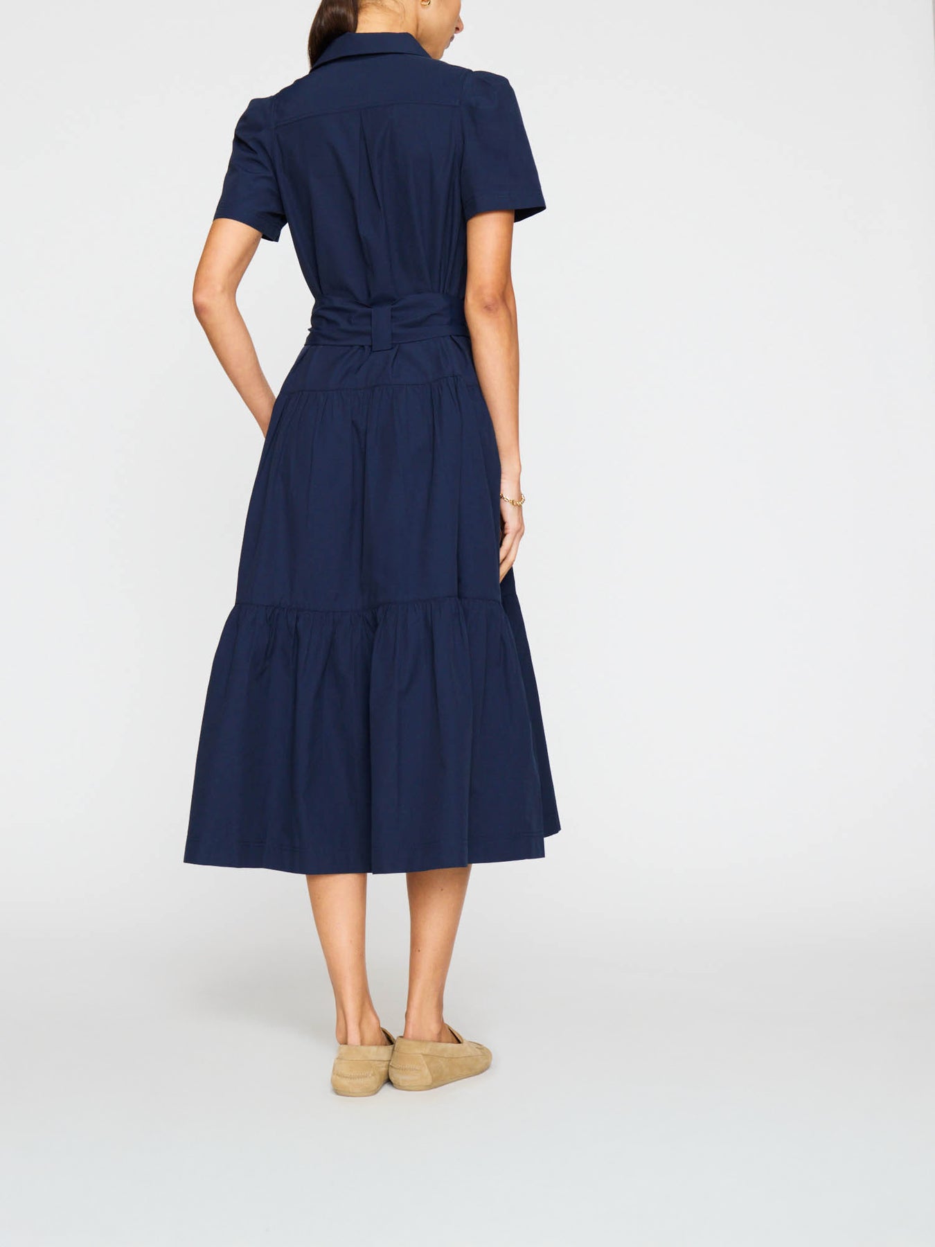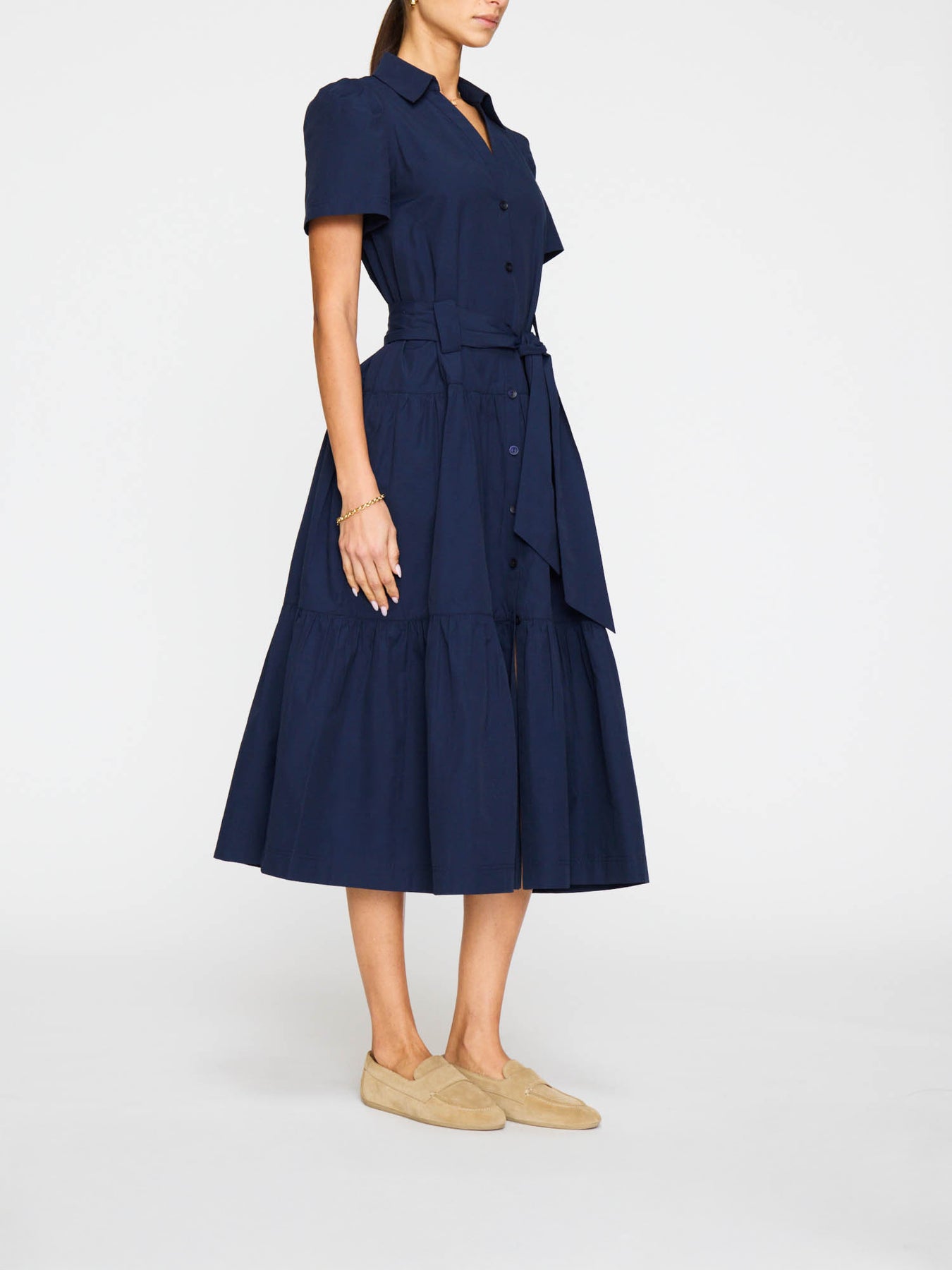 Regular price $368.00 Sale price $257.00The Alina Dress offers a tiered skirt and drop waist design, complemented by a self-belt at the waist for multi wear functionality. Pleated short sleeves for a feminine twist on preppy sophistication.