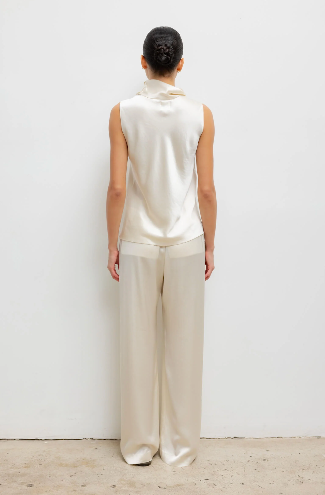 Regular price $250.00Cut in our Japanese-crafted Barb Satin, The Barb Sleeveless Cowl Neck is a classic shell silhouette, featuring a perfectly draped cowl neckline and tuckable length.