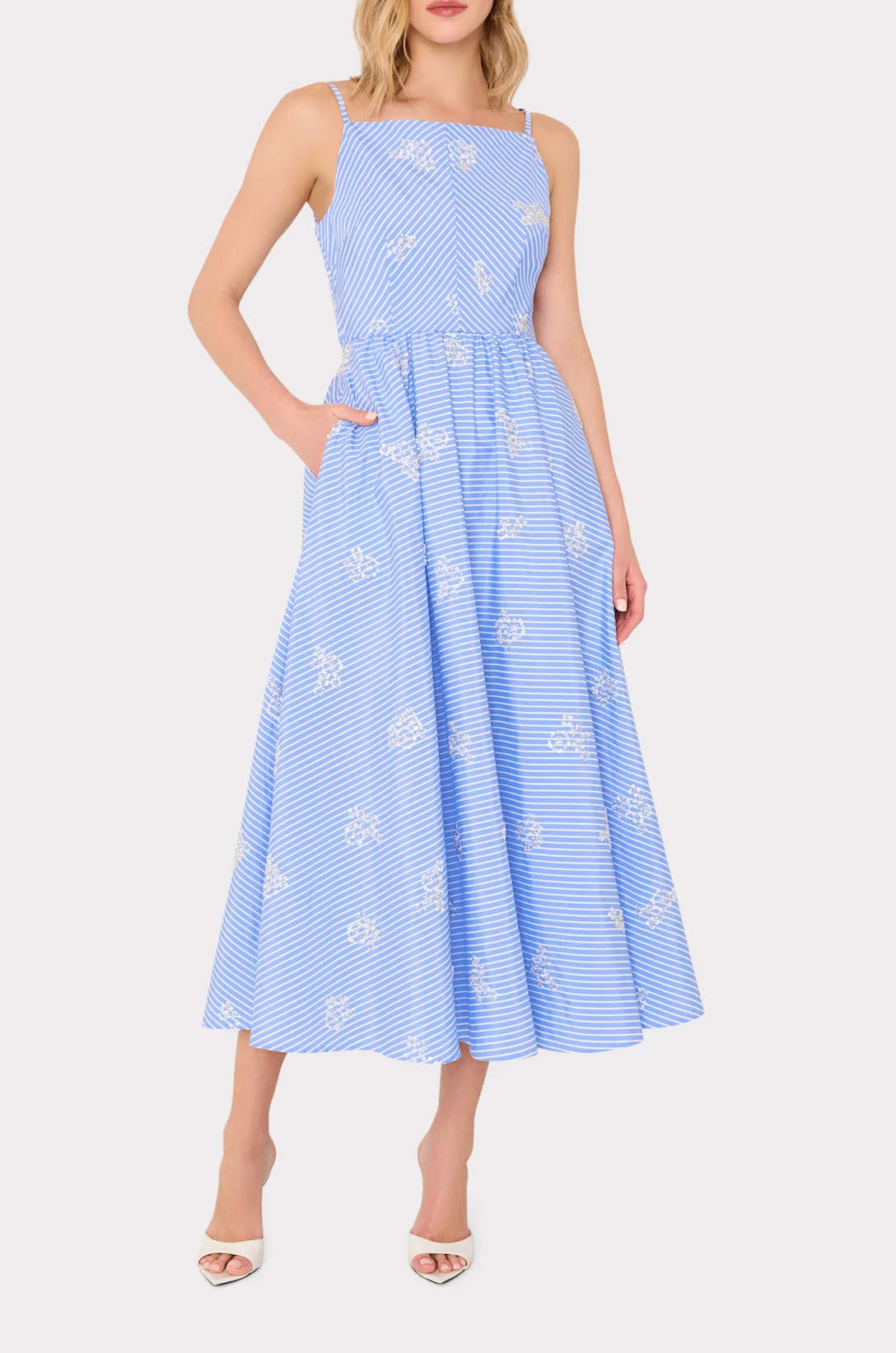 Rendered from a luxurious print jacquard fabric, this mini dress fits close to the body and flares out at the waist. It has a square neckline, thick straps, and is finished with a back zipper to close. Wear it to cocktail parties, birthday soirées, weddings, and more.
