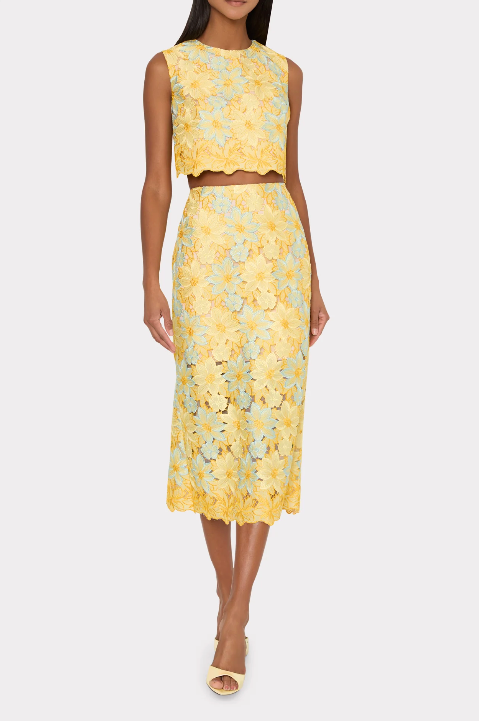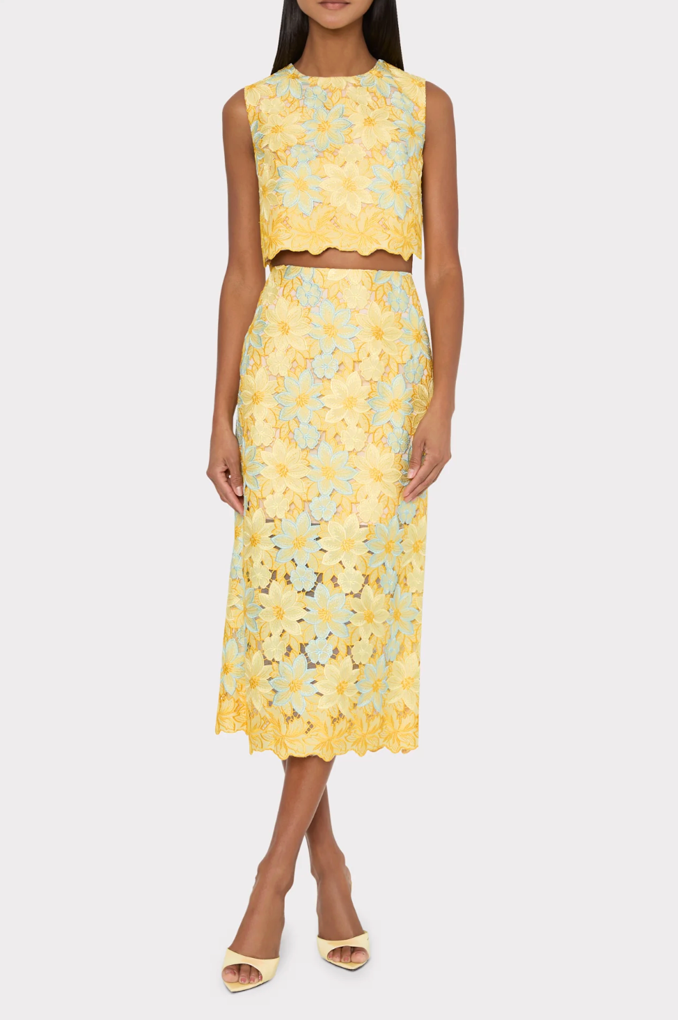 Cut from a blossom of pastel floral lace, the Alina top is everything we love about Spring dressing. Line it up for weddings, garden parties, showers, galas, luncheons, and more. It’s slightly cropped, designed to hit exactly above the waistline when paired with its coordinating Alani Midi Skirt. It’s lined and finished with a back zipper to close.