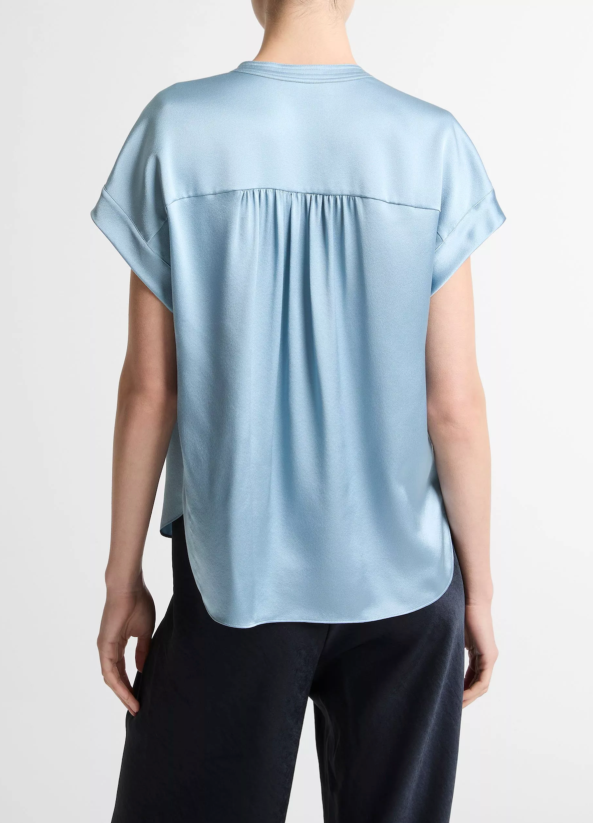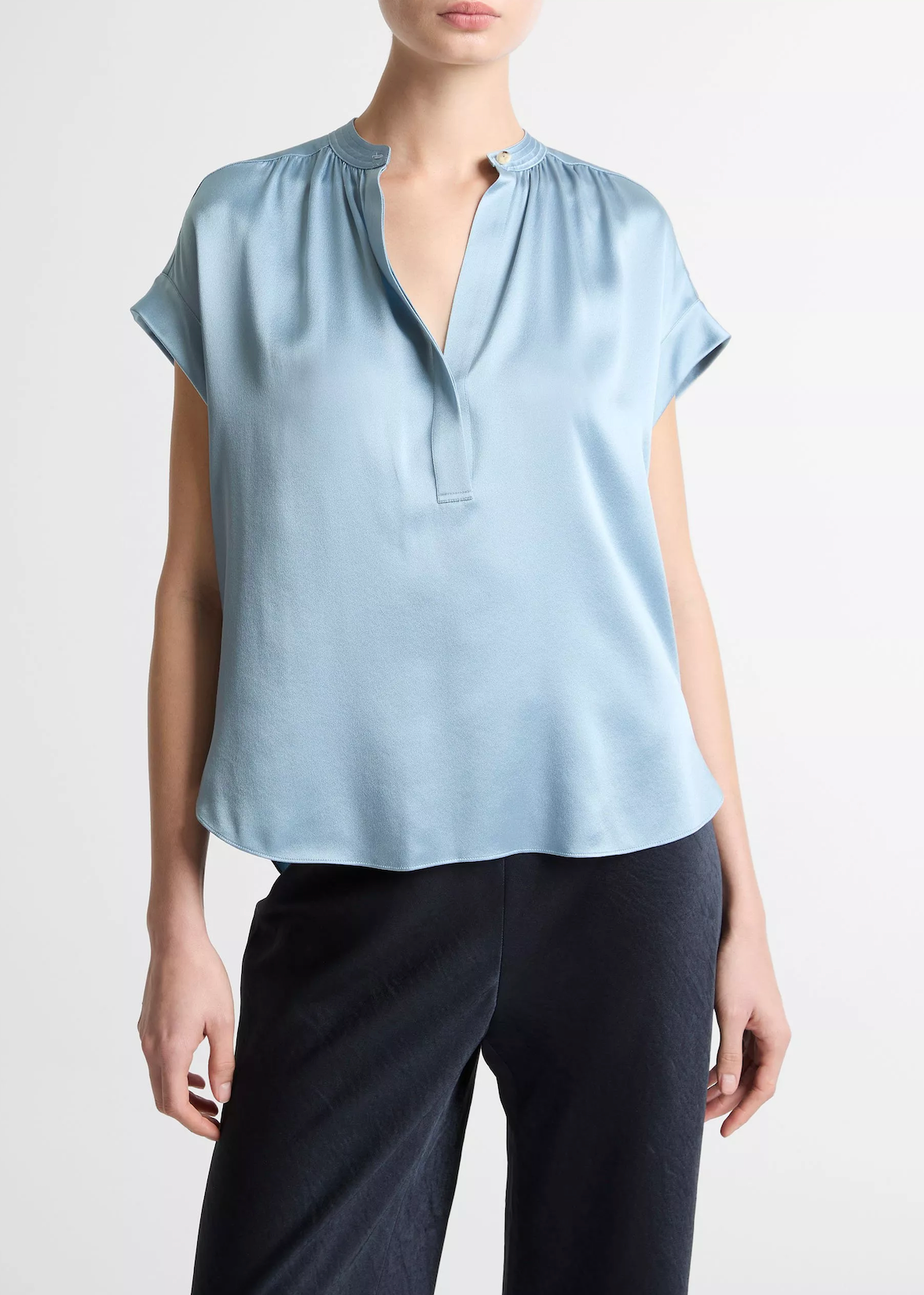 Hints of romanticism pervade our lineup this season. See the smocked ruching that defines this silk-blend blouse, adding soft volume to the undercollar, sleeves and nape. Pay close attention also to the cuffs, which we've finished with a refined metal-ball button. It's another special detail you'll spy peppered throughout this collection's silhouettes.